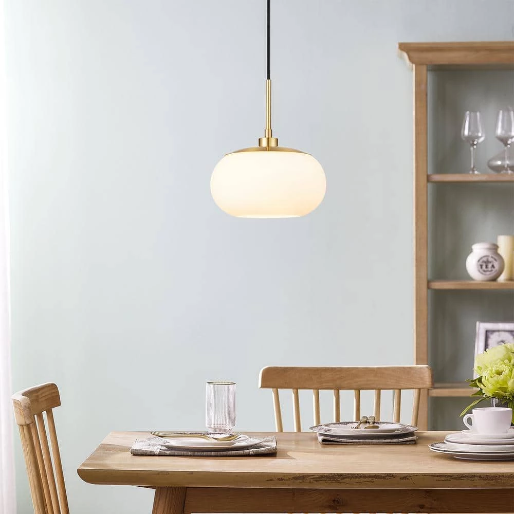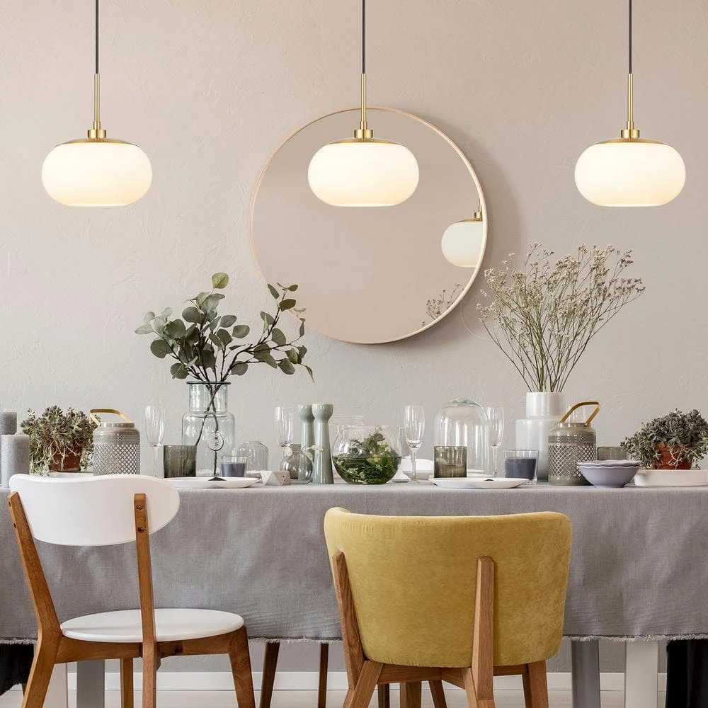 With its clean sleek design and a beautifully crafted opal glass shade, this pendant has an elegant interpretation of contemporary style. The soft white opal glass acts as a gentle light diffuser and its open bottom is easy for changing bulbs. This pendant is perfect for hanging over a kitchen island or a dining table.