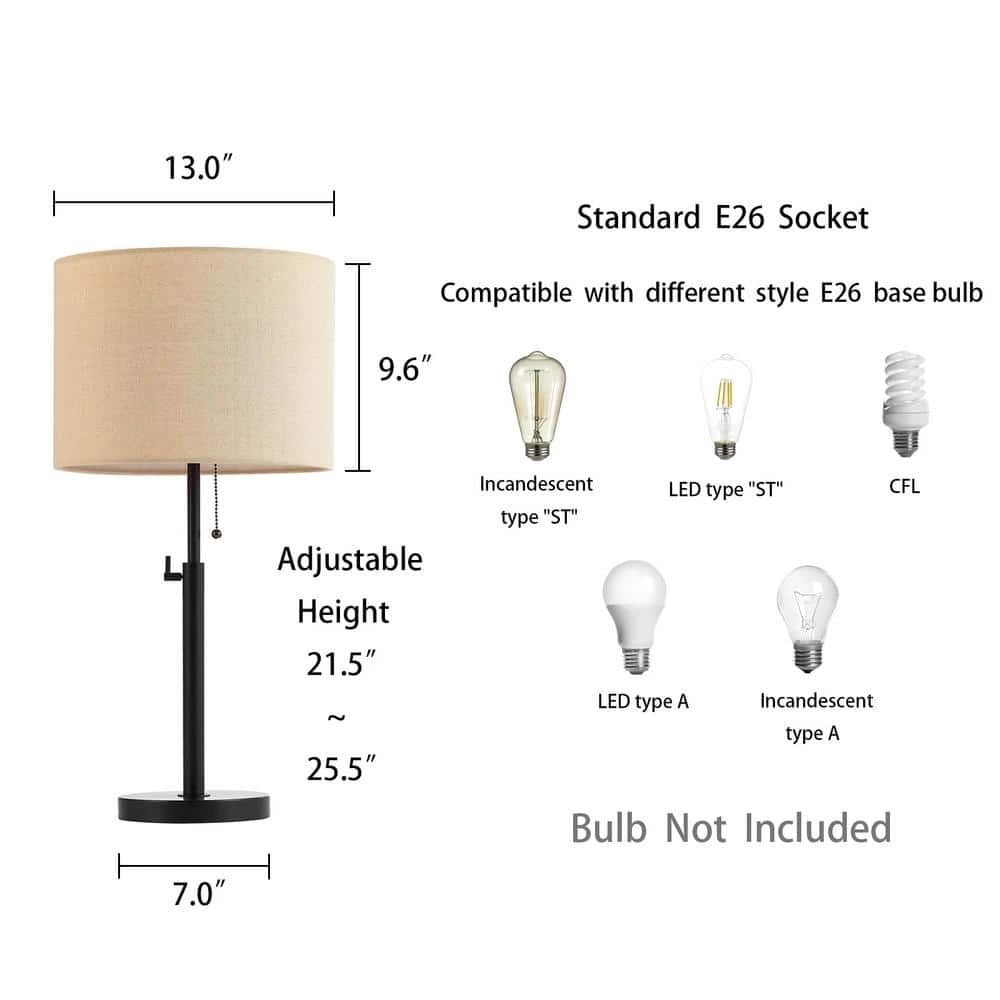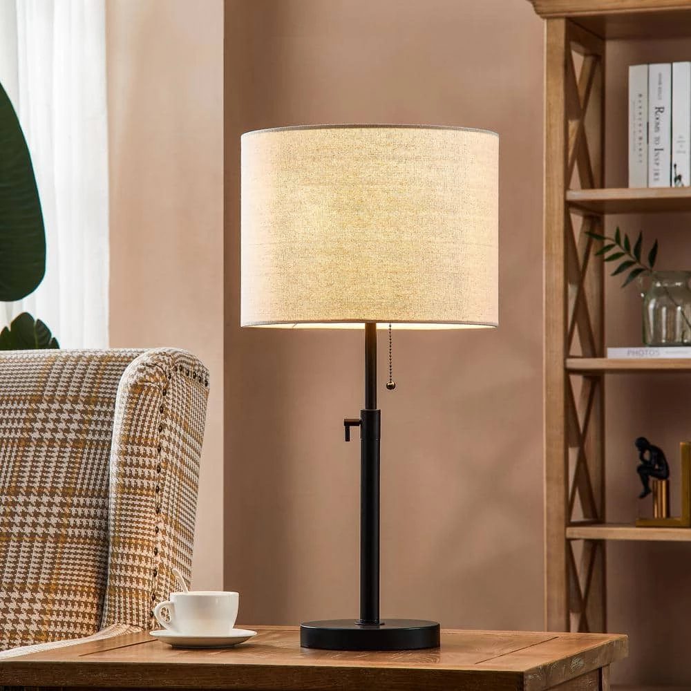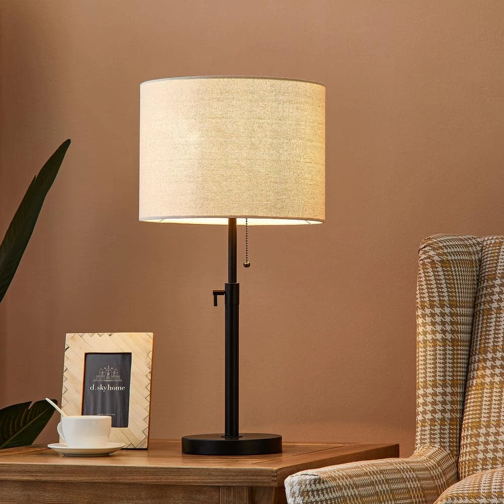This classic and simple table lamp serves as a minimalist in your room. The combination of neutral color shade and black finish lamp body is harmonious with any room. The adjustable tube satisfies any height you need. This simple table lamp can bright your mood everyday at home.