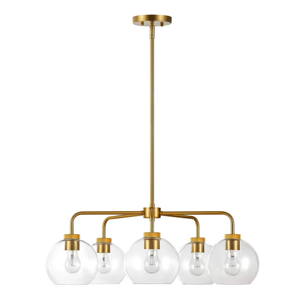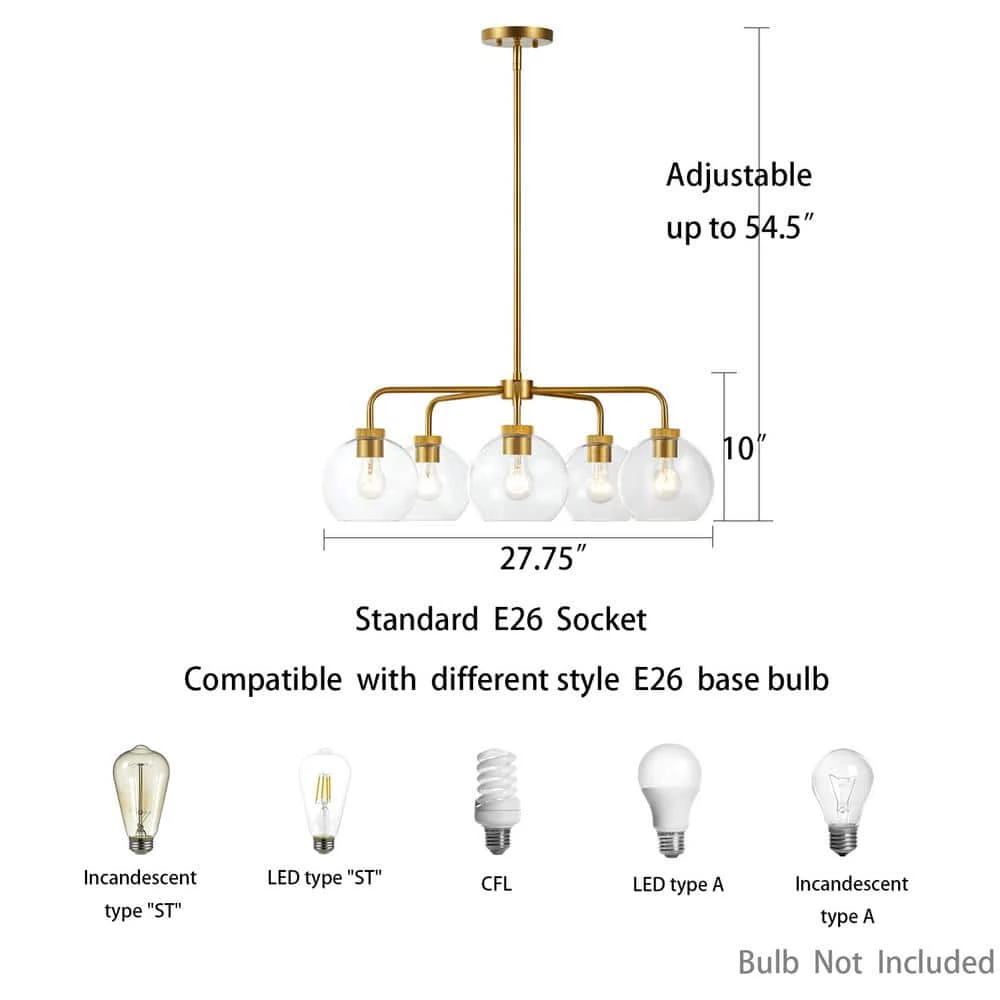 Highlighted by a sleek fixture, this bubbly glass 5-light chandelier will add a modern flair to interior decoration. The clear glass globe allows cozy glow to fulfill the room. 1 6 in. and 3 12 in. tubes are included for different heights. Hang this modern 5-light chandelier in your room to add some lively atmosphere.