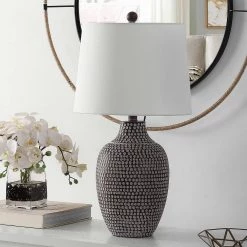 This post-modern table lamp has a fashionable base with ridges. The table lamp provides relaxing glow through its well-knit shade for your cozy home. In addition, the minimal and stylish look of it can serve as a great home decor. You can choose different light intensity upon atmosphere by the 3-way switch. Simple, fashion and functional.