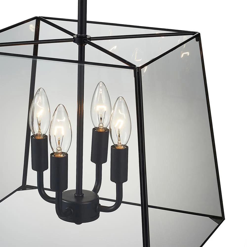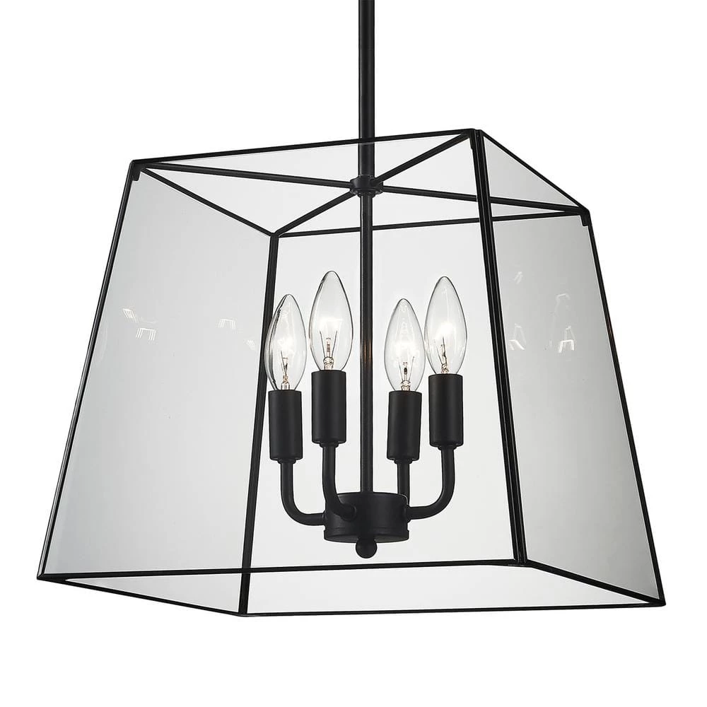- 4-light painted black lantern pendant brings a sleek and contemporary look to any urban space