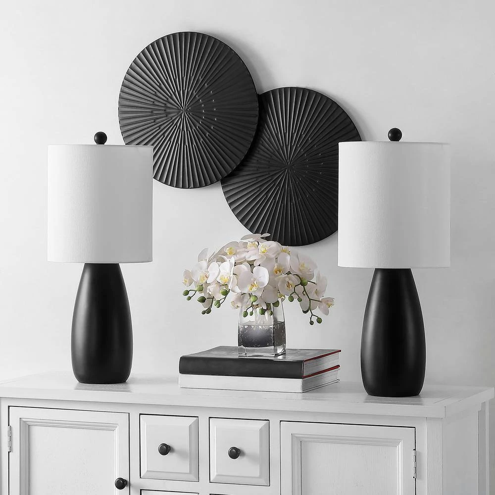Understated and modern, this Arlia Table Lamp is ideal for today’s sleek interiors. Arlia’s oversized drum shade pairs beautifully with its conic black silhouette, making for the perfecting finishing touch in any room. Sold in sets of 2. Great addition to any room.