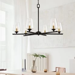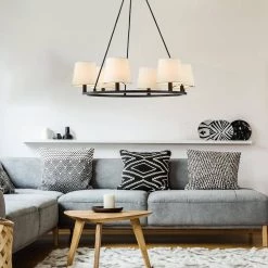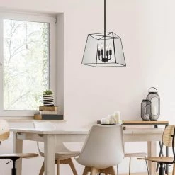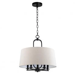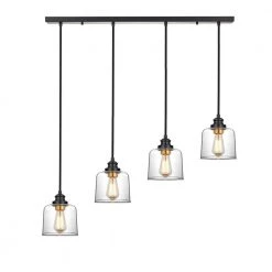 37 in. 4-Light Bronze Farmhouse Kitchen Island Pendant Light with Drum Glass Shade by Kawoti