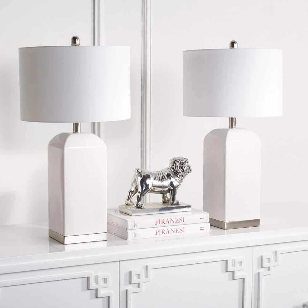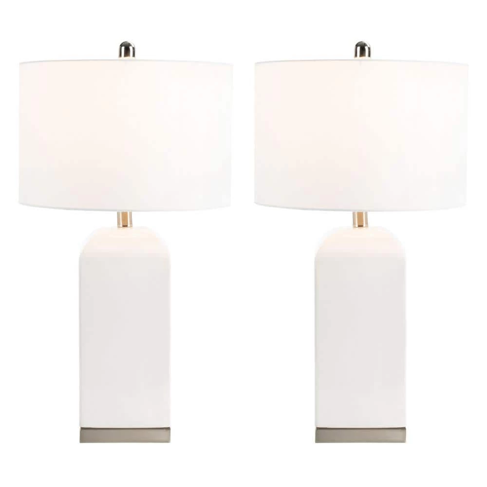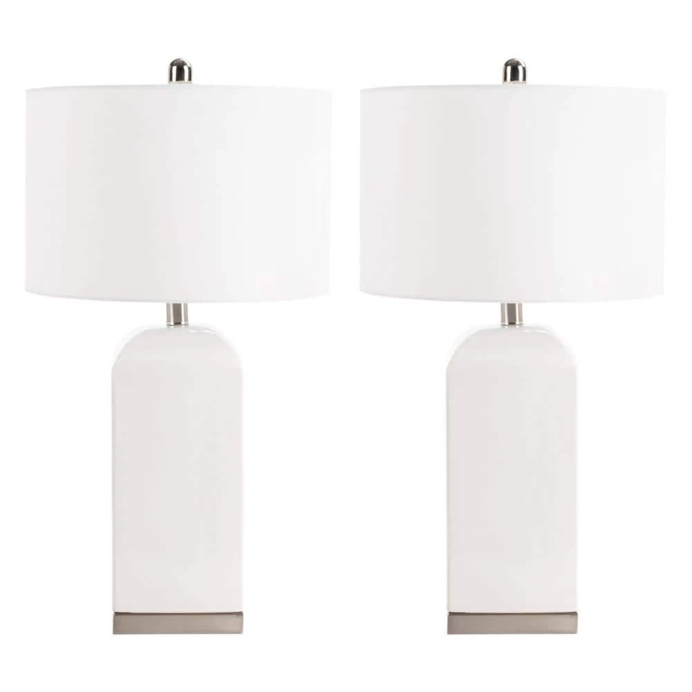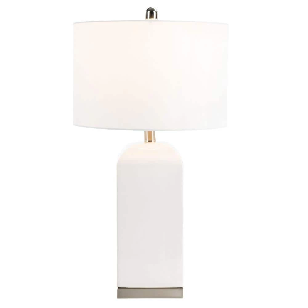 The crisp lines and smooth curves of this Ernia Table Lamp make it ideal for illuminating any style of decor. Sold in sets of 2 to frame nightstands or consoles, Ernia’s clean white ceramic is beautifully paired with a silver metal base and neck, giving a touch of understated decorative depth. Great addition to any room.