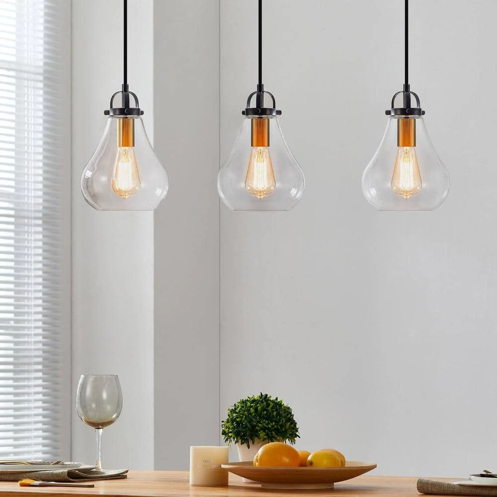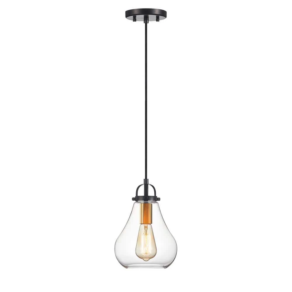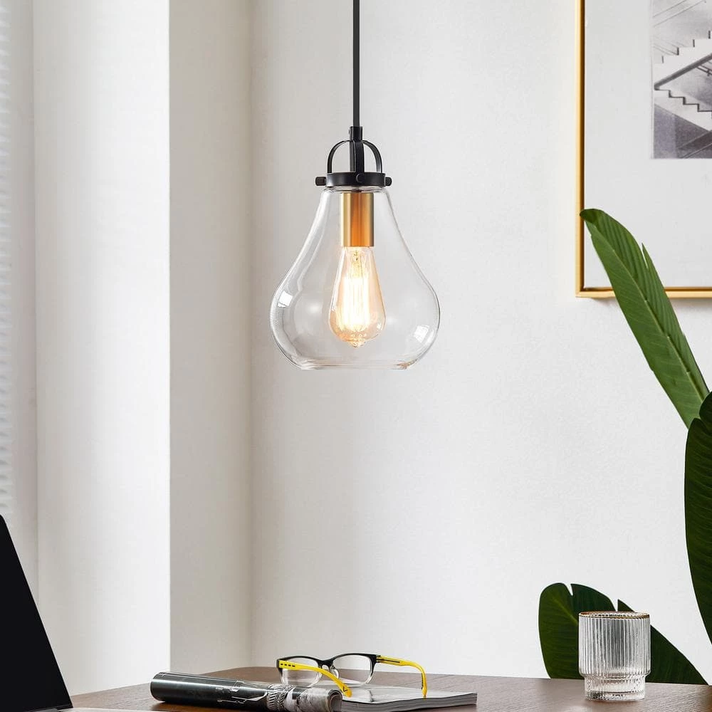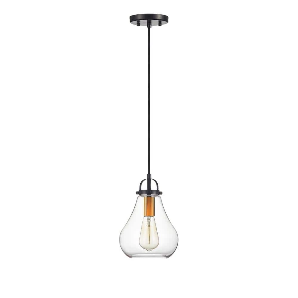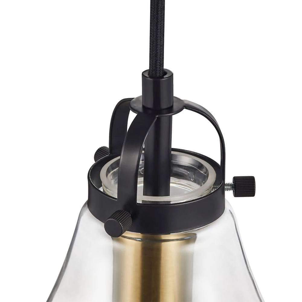 This mini pendant diffuses cozy glow through the graceful curved glass shade. The bronze iron finials over the antique brass socket ring contains a little industrial appeal as well. Pendant height can be adjusted from 10.5 in. to 84 in. for different room spaces. Perfect for illuminating a foyer or lining a few up above the kitchen island.