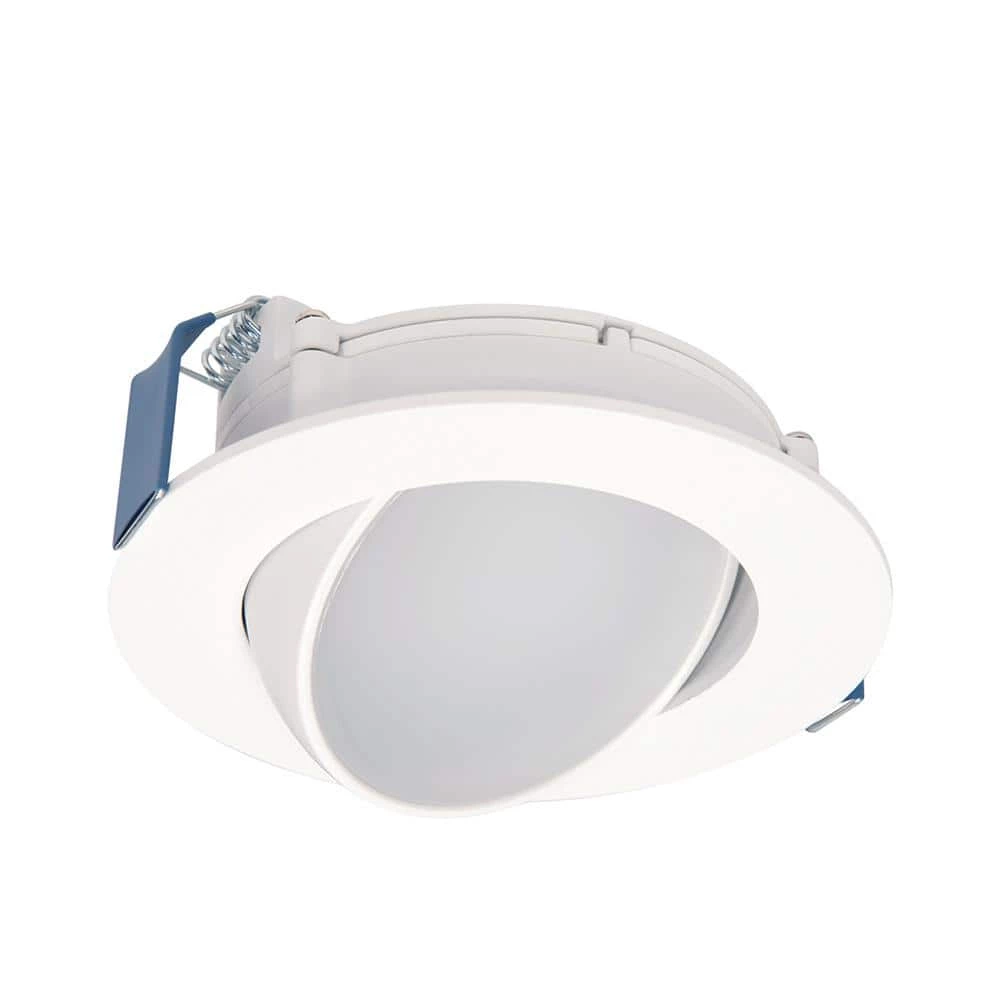 HALO HLA4 Wide Beam Selectable Series Downlights are complete 4 in. canless recessed lights with adjustable gimbal. These recessed lights are designed for use in new construction, remodel and retrofit installation, without needing a housing or j-box. Canless design goes where LED can lights can’t. Choose your color temperature directly on the fixture. With the flick of a switch, you can choose between 5 color temperatures ranging from warm (2700K) to daylight (5000K) prior to installing into your ceiling. HALO HLA recessed lighting fixture features an LED driver that offers 120-Volt dimming capability. The HLA4 LED recessed lighting adjustable gimbal offers 30° tilt and up to 360° rotation, 40° beam angle. HLA4 recessed LED lights are great for accent or task lighting as well as wall washing. These canless LED recessed lights are wet location listing and can be in direct contact with insulation.