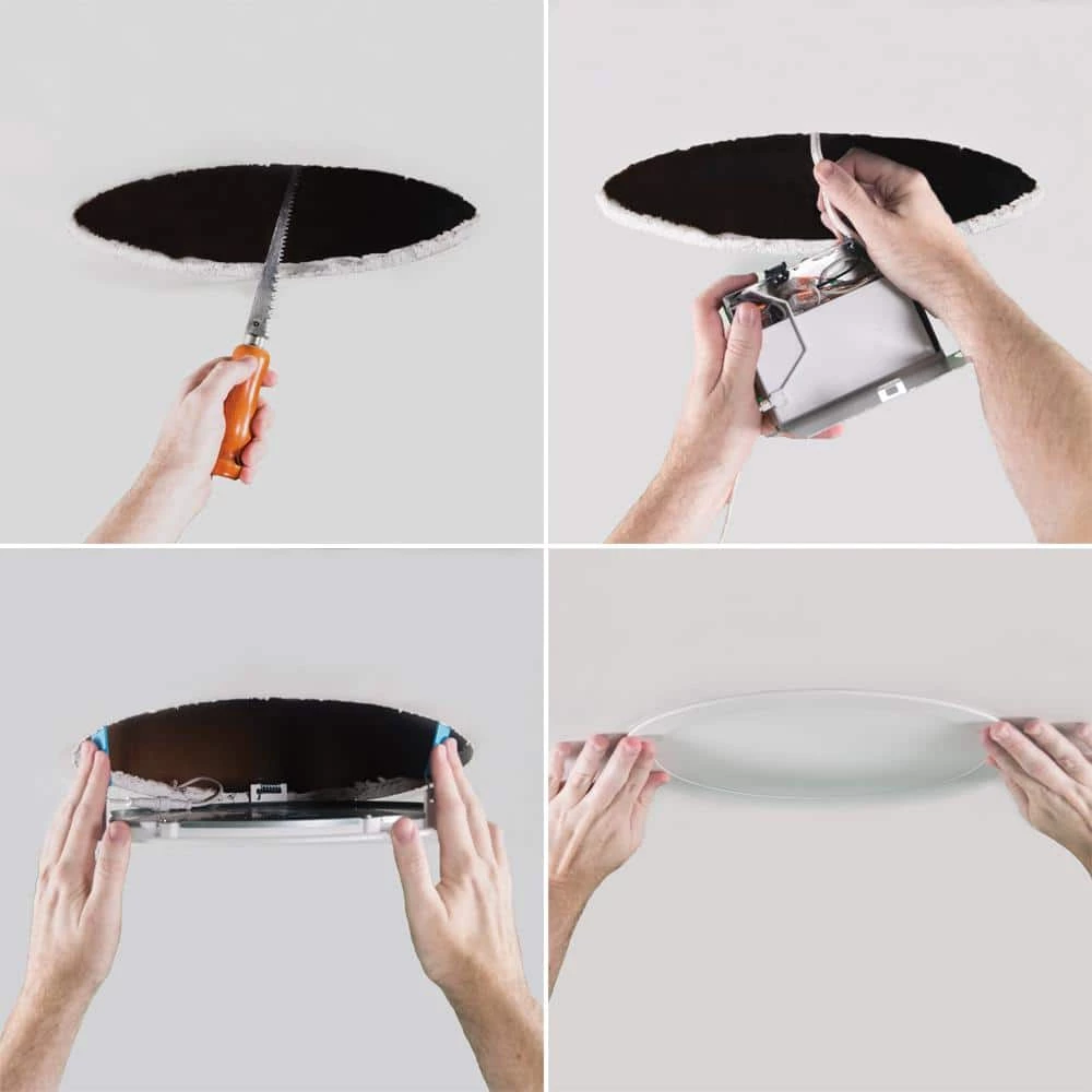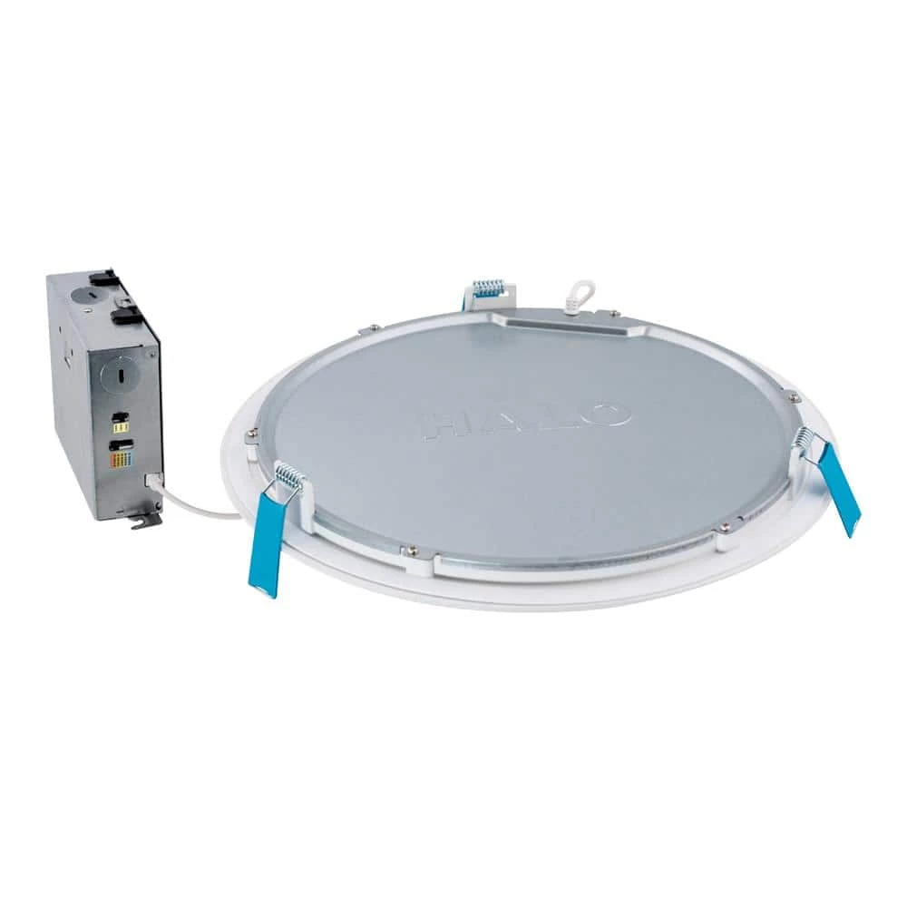The Halo HLB12 is aย 12 in. canless recessed light featuring an ultra-thin LED lens with remote driver/junction box. This direct mount light is suitable for new construction and remodel applications. Field selectable lumen light levels and selectable color temperatureย all atย high color rendering provide excellent color performance to your home lighting. Simplified installation in drywall or suspended ceilings eliminates recessed cans, saving you time and money. Installs from below your ceiling in as little as 3-1/2 in. plenum height, can be used in direct contact with insulation and is airtight. Use for general area lighting in low to medium height ceilings where energy savings, long life and economy are required.