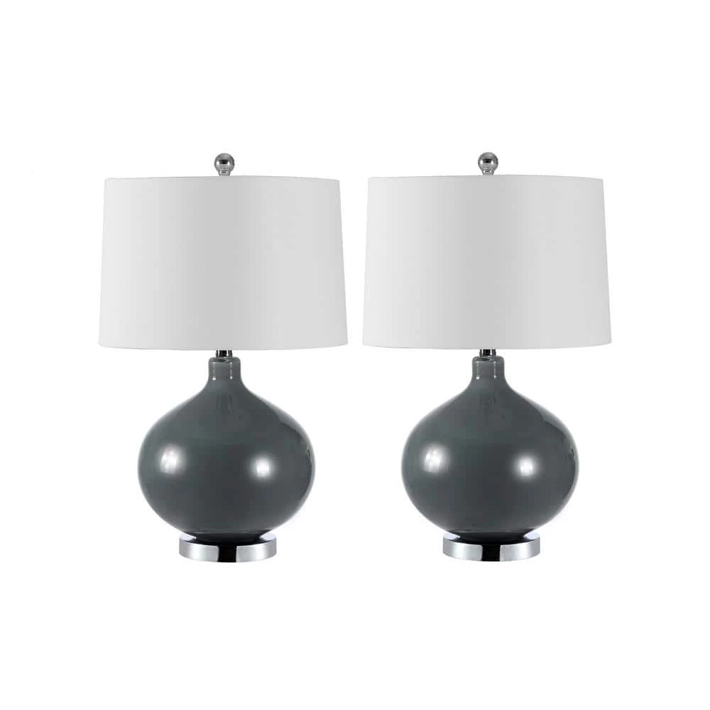 Elegant and contemporary, this Masera Table Lamp is a must-have for today’s decor. Masera is absolutely lovely in the sleek gray glass of its classic gourd silhouette, while its silver metal base proves especially fabulous with a built-in USB port. Sold in sets of 2. Great addition to any room.