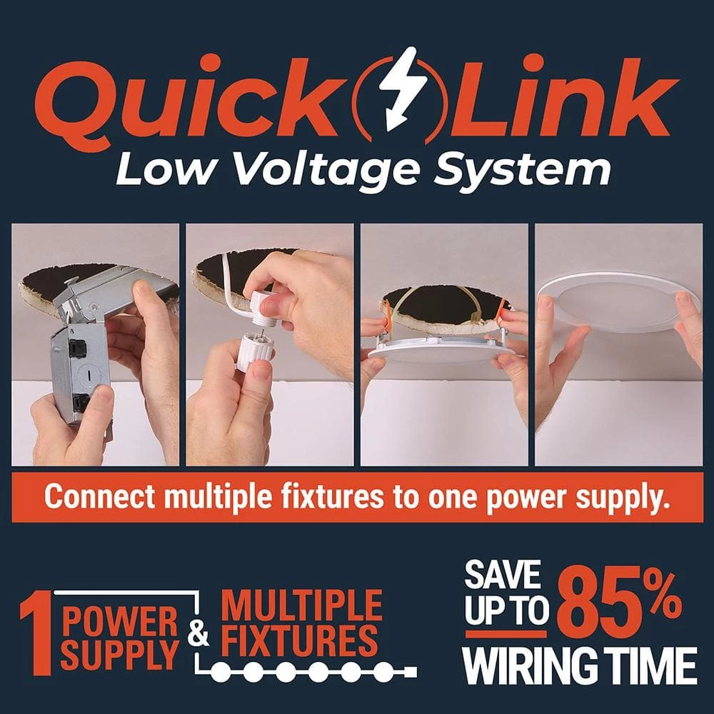 - QuickLink low voltage kit installs up to 85% quicker than traditional downlights