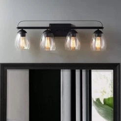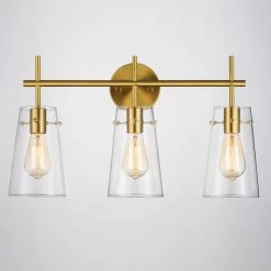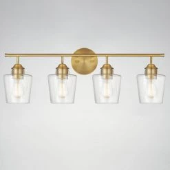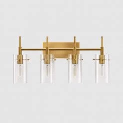 27.5 in. 4-Light Antique Brass Cylindrical Vanity Light with Clear Glass Shade by Kawoti